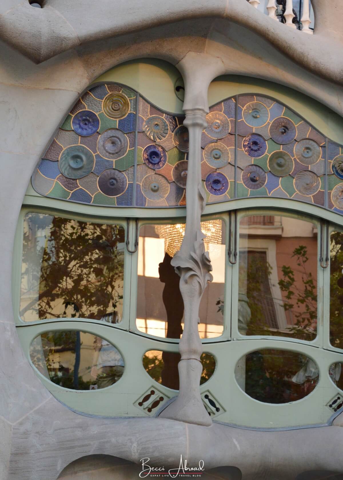 The technique of the broken ceramic tiles used on the façade is called trencadís, and you can see it repeated both inside Casa Batlló and on other of Gaudí´s famous landmarks.