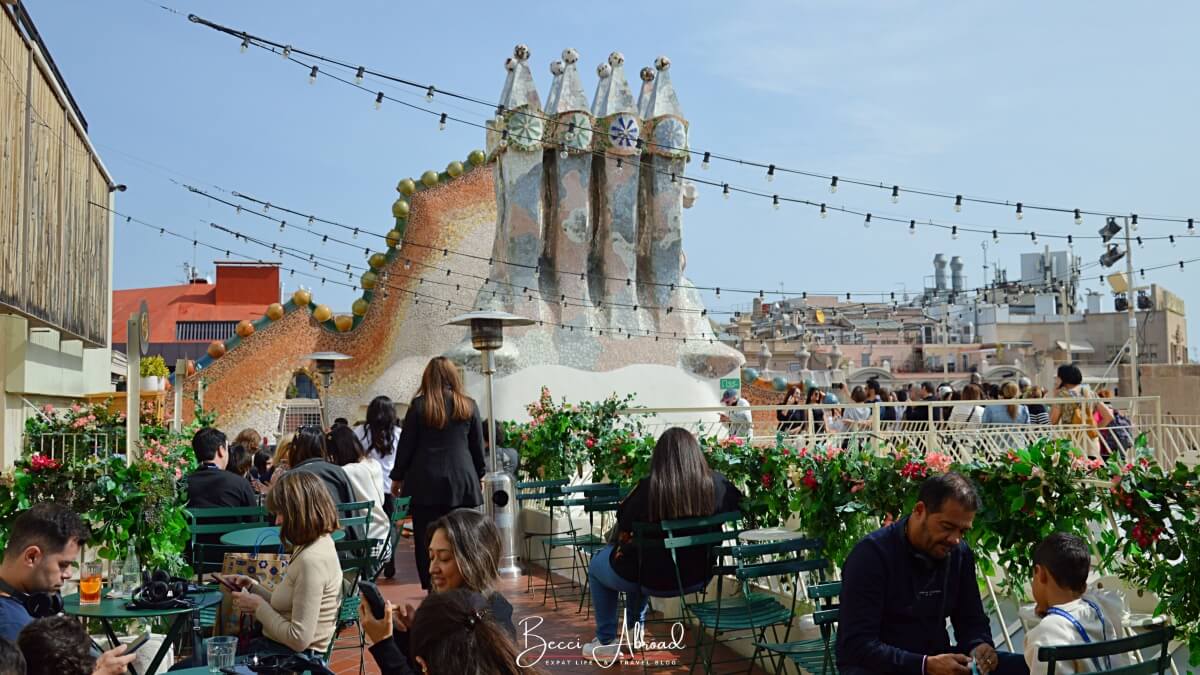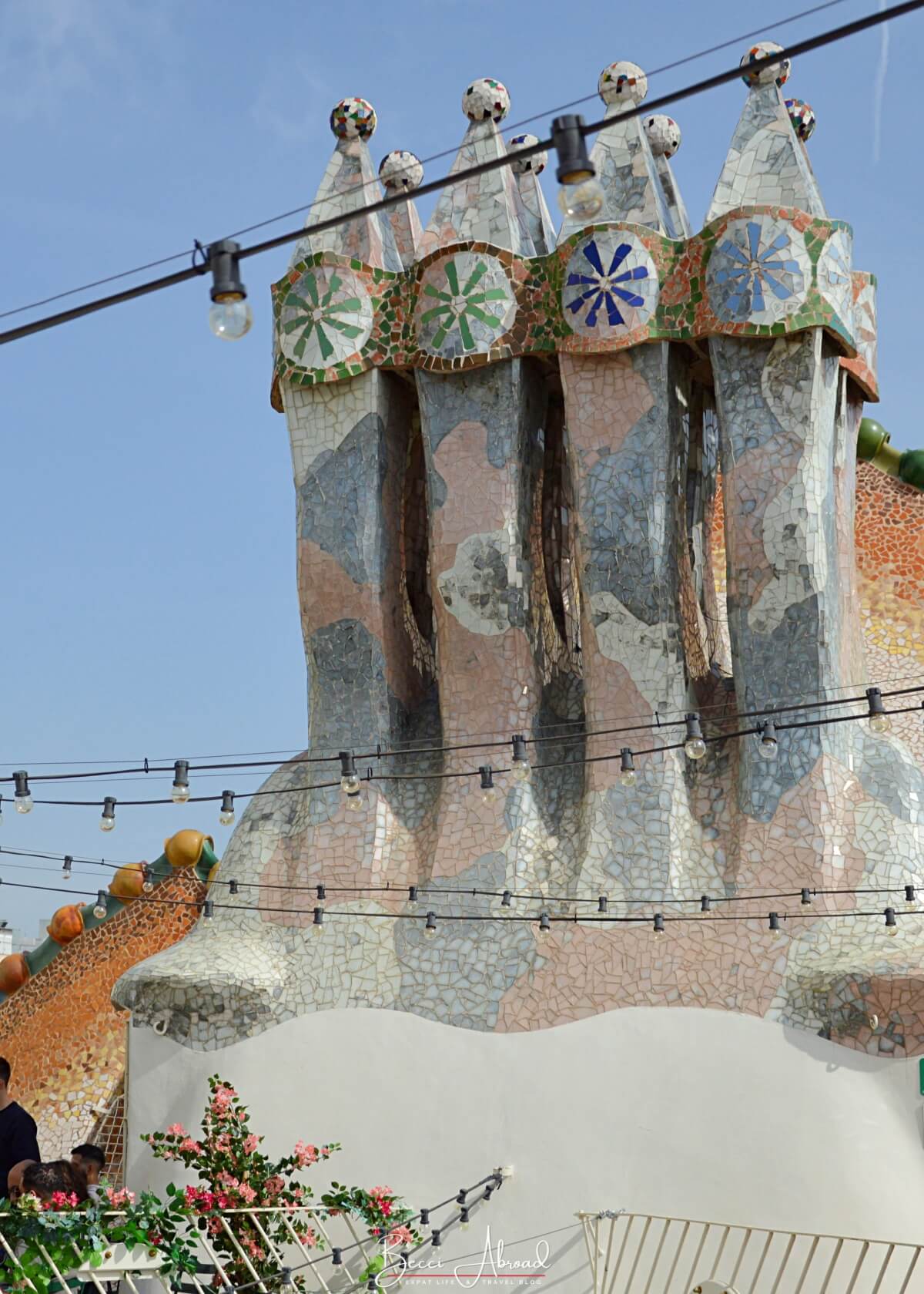 From the rooftop, you can get a closer look at the beautiful, colorful trencadís mosaic. and admire the views over Barcelona.