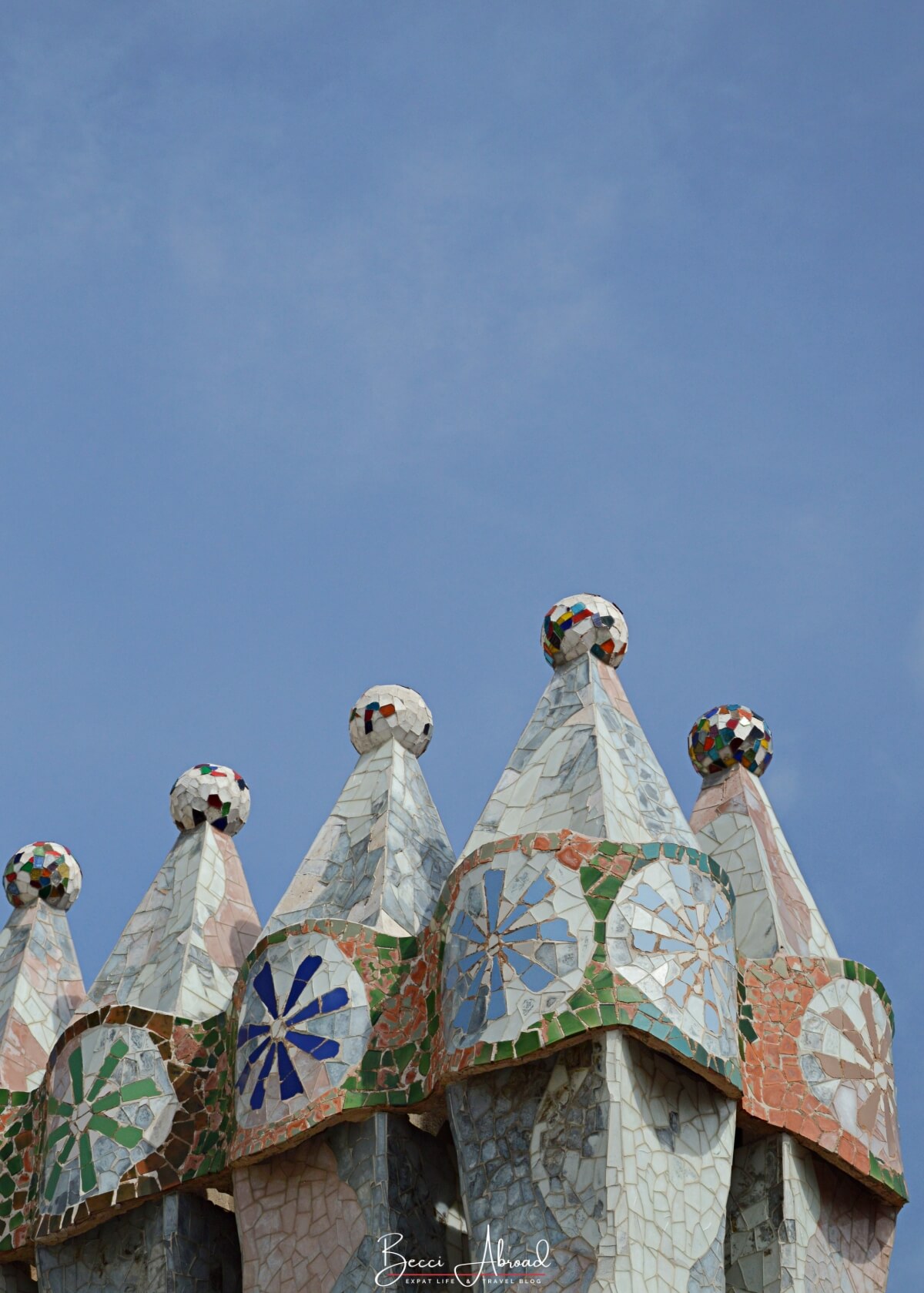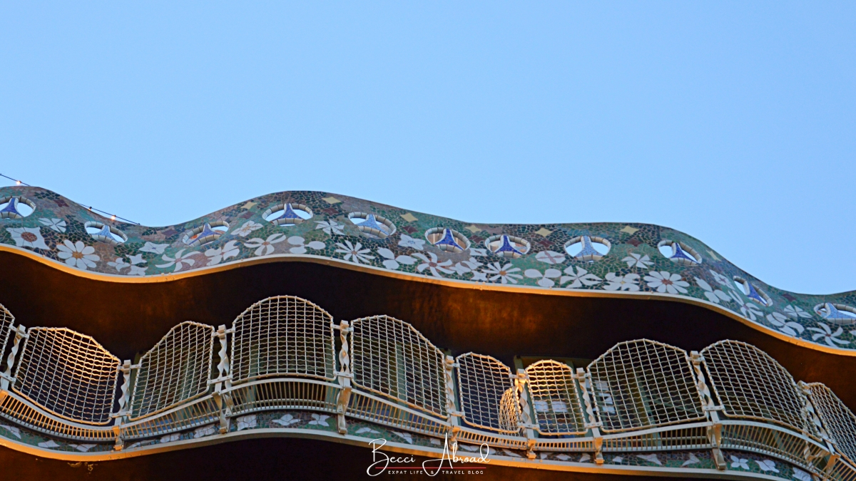 The top part of Casa Batlló’s façade towards Passeig de Gracia is covered in colorful ceramic tiles and is commonly called the dragon’s back.